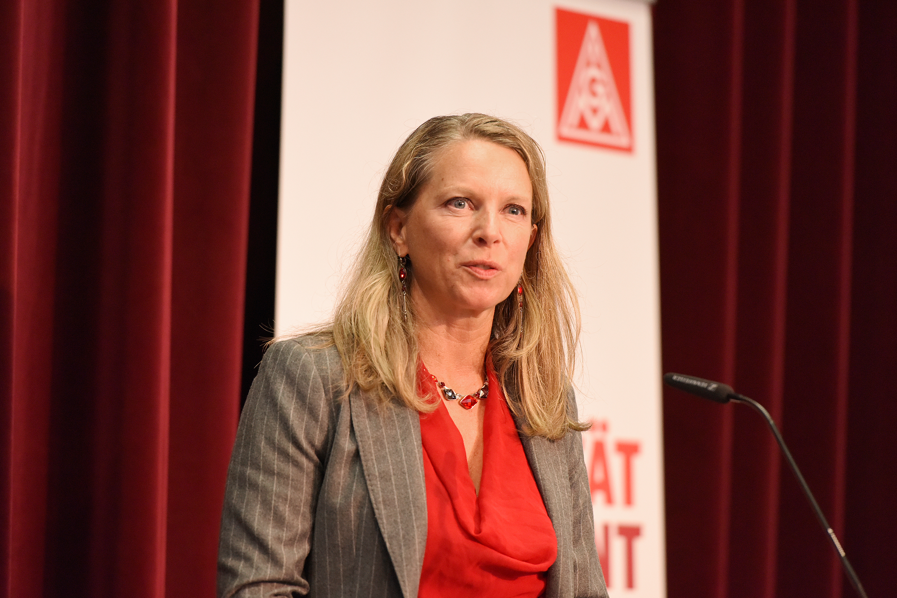Nadine Boguslawski, geschäftsführendes Vorstandsmitglied der IG Metall und u.a. für Tarifpolitik zuständig , untermauerte in ihrer Rede die Richtigkeit und Wichtigkeit unserer Forderungen nach 7% mehr Entgelt, 170 Euro mehr Ausbildungsvergütung, einer sozialen Komponente sowie die Verbesserung der Regelungen zum T-Zug A.